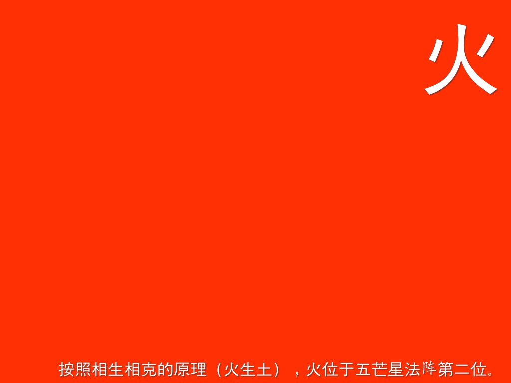 按照相生相克的原理(火生土),火位于五芒星法阵第二位。