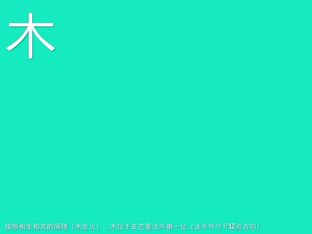 按照相生相克的原理(木生火),木位于五芒星法阵第一位(法阵顺时针12点方向)。