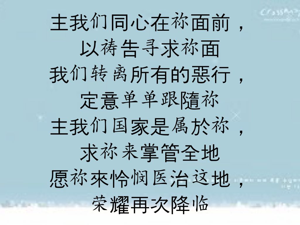遵行主耶稣对门徒的大使命,把福音传扬到各地,祝福有需要的人。