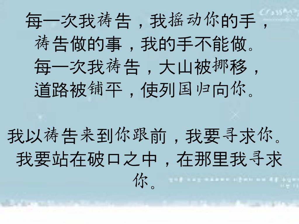 一个肯代祷勇士-站在破口恳切为当地代祷,祝福恩典临在。