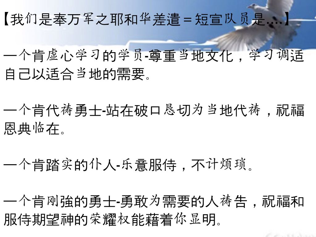 【我们是奉万军之耶和华差遣=短宣队员是....】