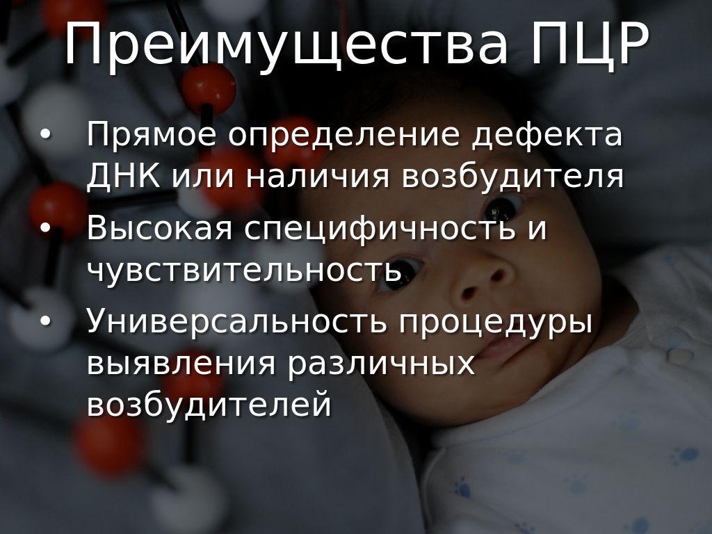 • Прямое определение дефекта ДНК или наличия возбудителя