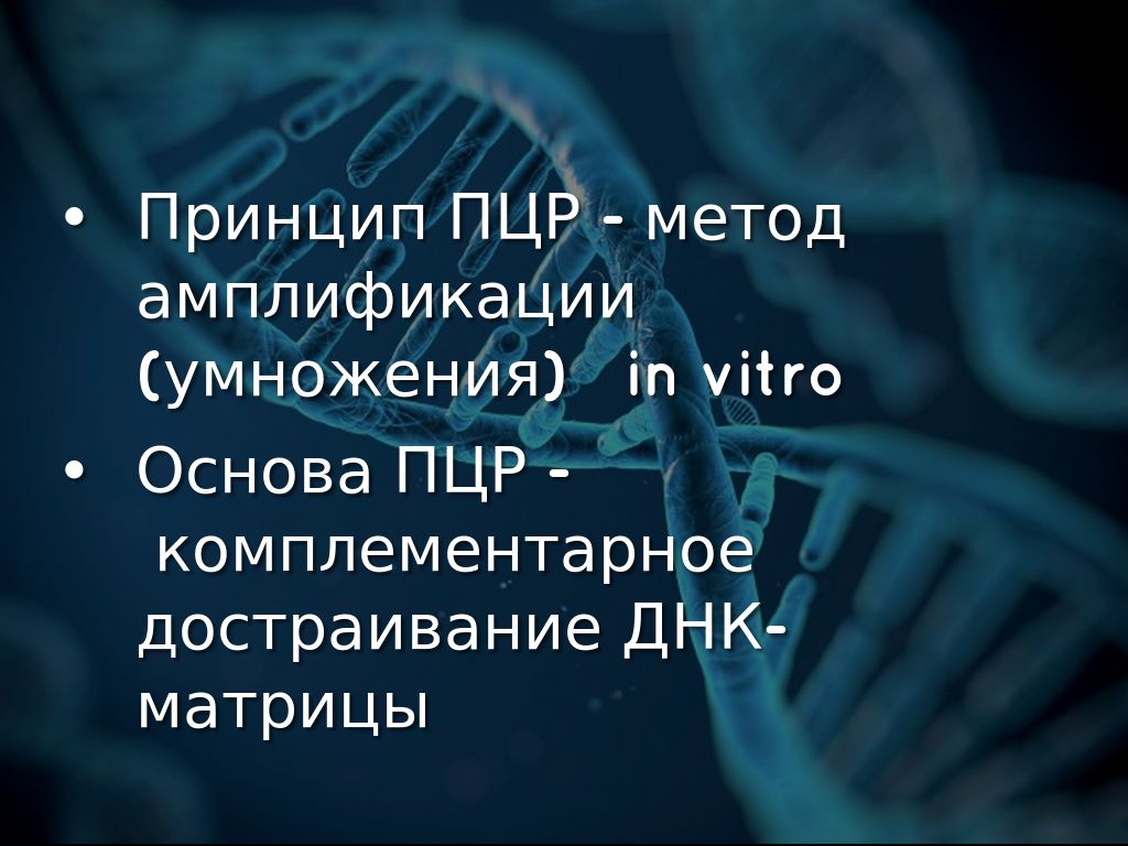 • Принцип ПЦР - метод амплификации (умножения) in vitro