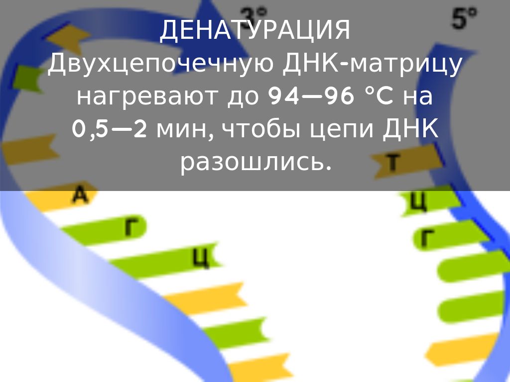 Двухцепочечную ДНК-матрицу нагревают до 94—96 °C на