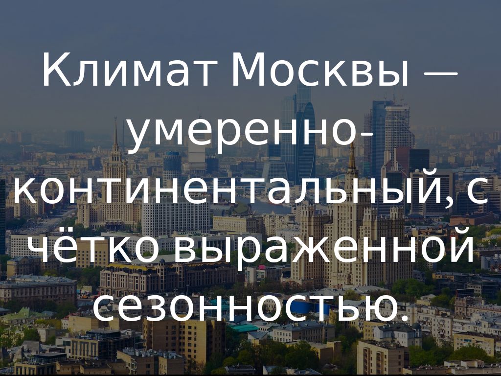 Климат Москвы — умеренно-континентальный, с чётко выраженной сезонностью.