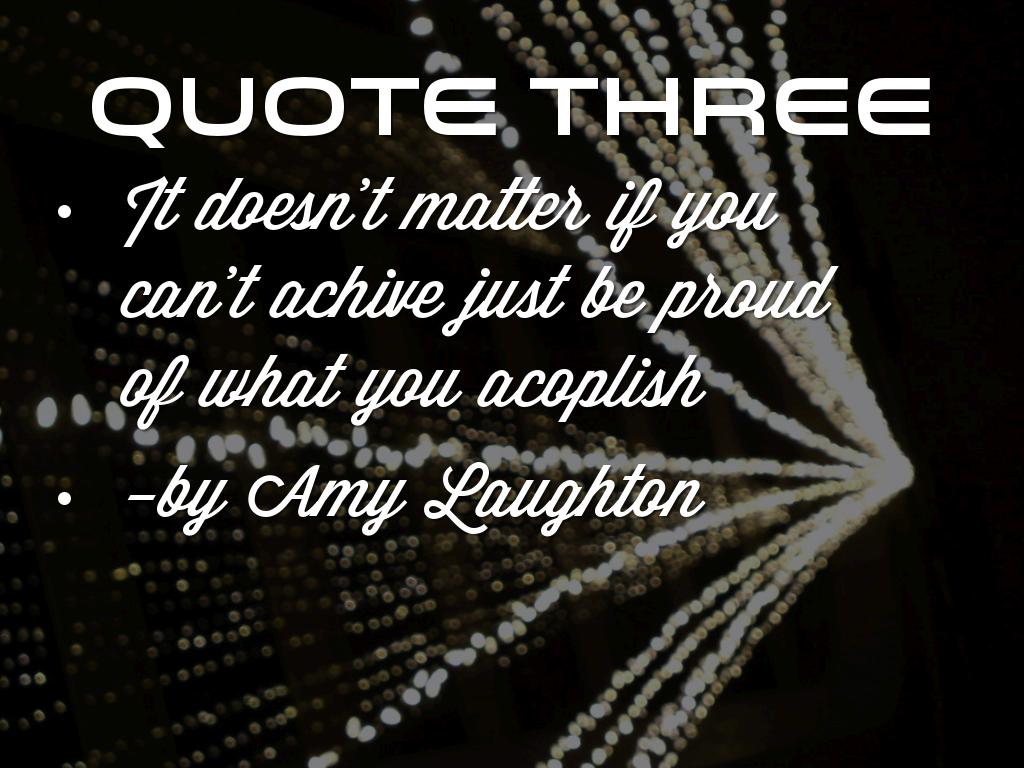 It doesn’t matter if you can’t achive just be proud of what you acoplish