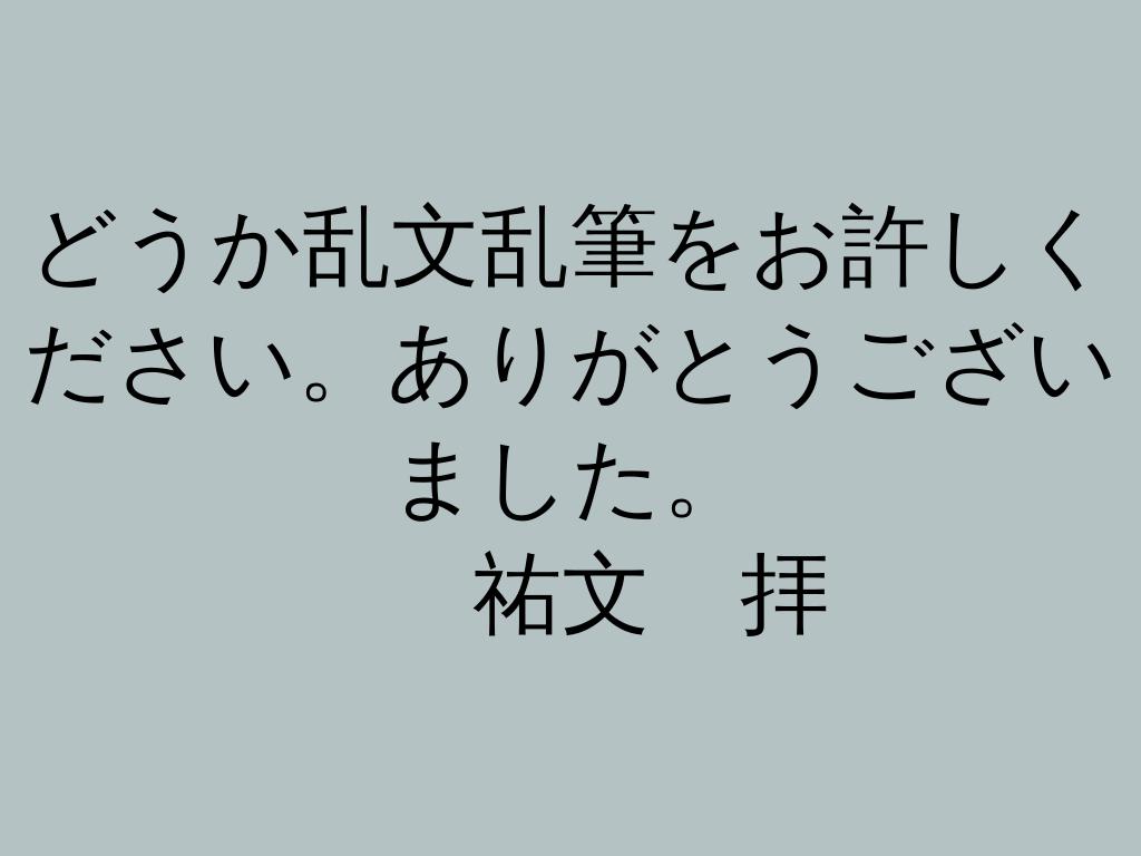 どうか乱文乱筆をお許しください。ありがとうございました。
