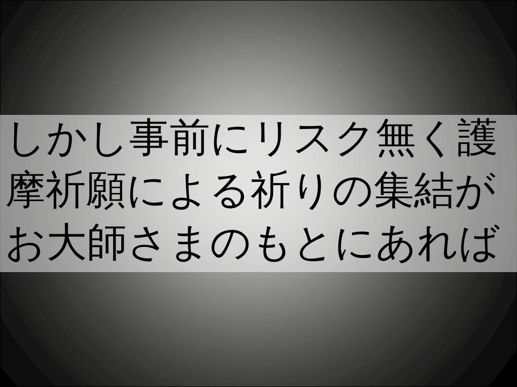 しかし事前にリスク無く護摩祈願による祈りの集結がお大師さまのもとにあれば