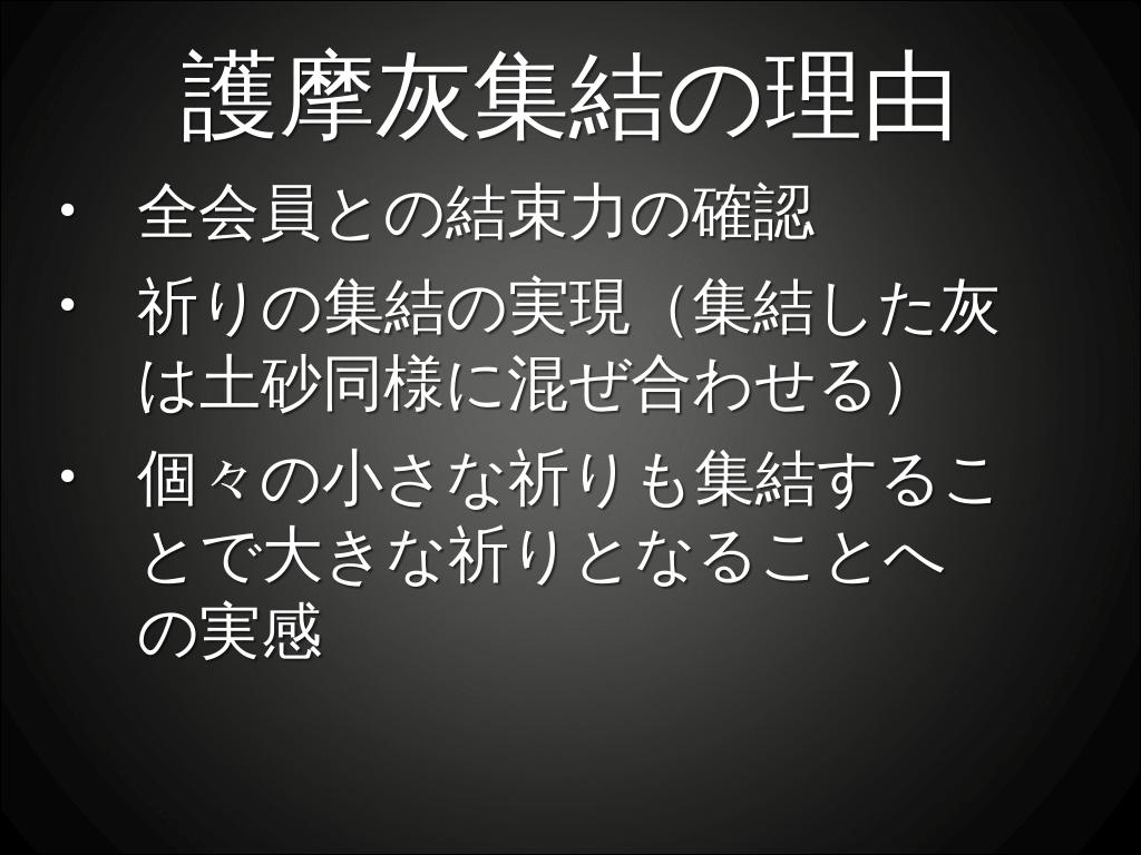 - 祈りの集結の実現(集結した灰は土砂同様に混ぜ合わせる)