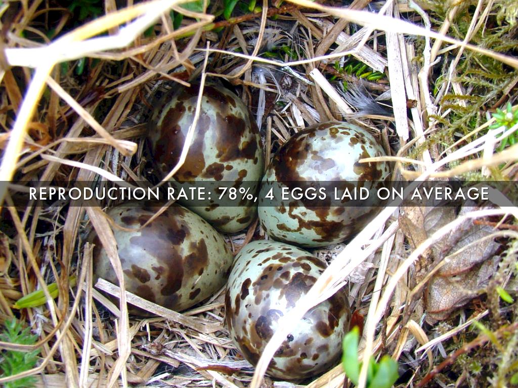REPRODUCTION RATE: 78%, 4 EGGS LAID ON AVERAGE