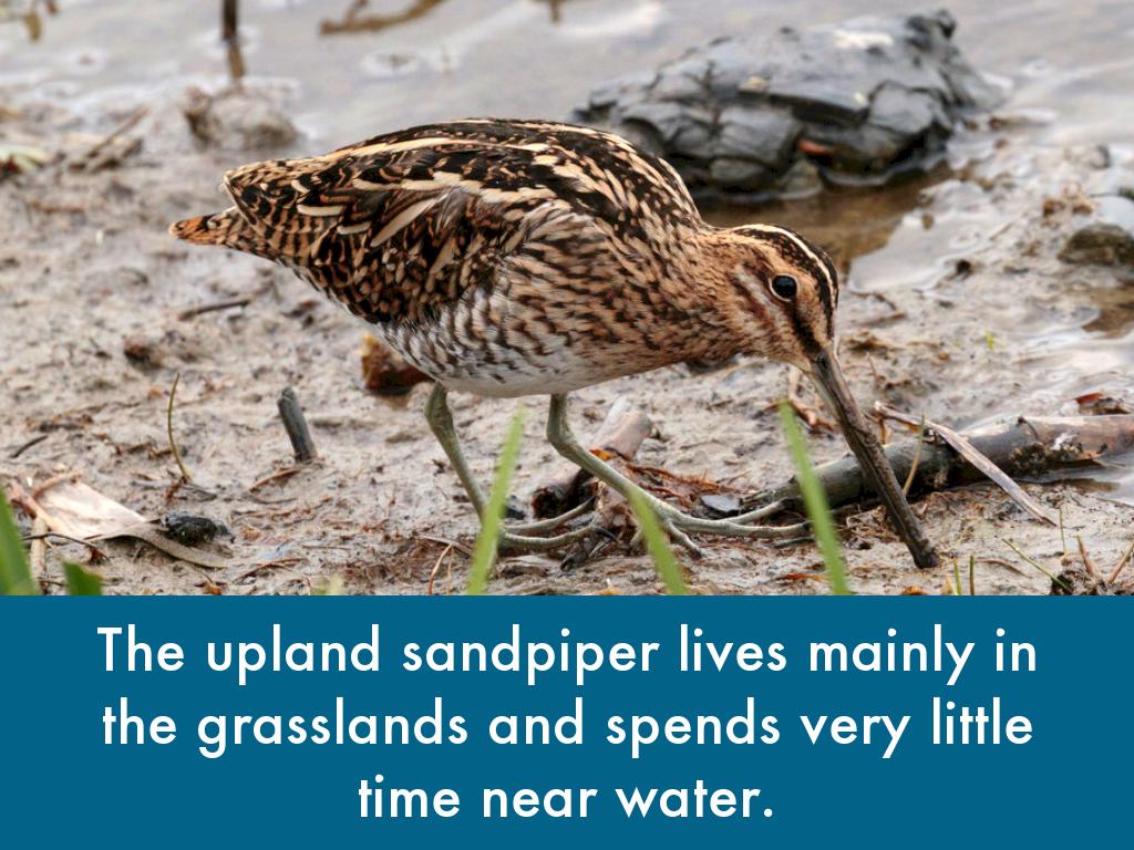 The upland sandpiper lives mainly in the grasslands and spends very little time near water.
