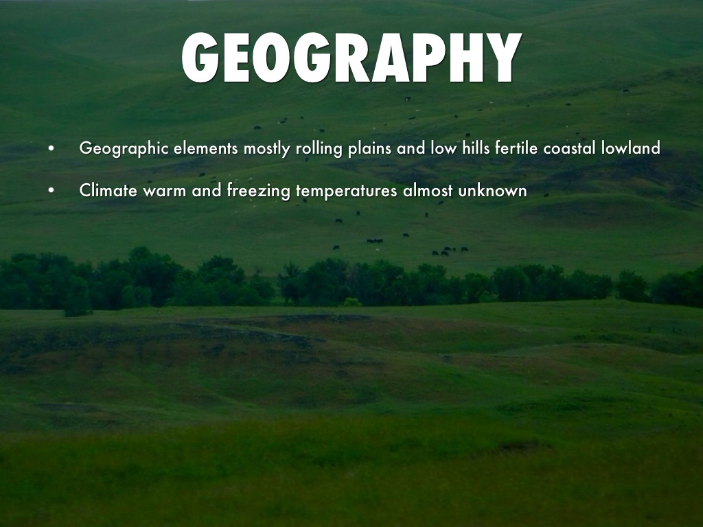 Geographic elements mostly rolling plains and low hills fertile coastal lowland