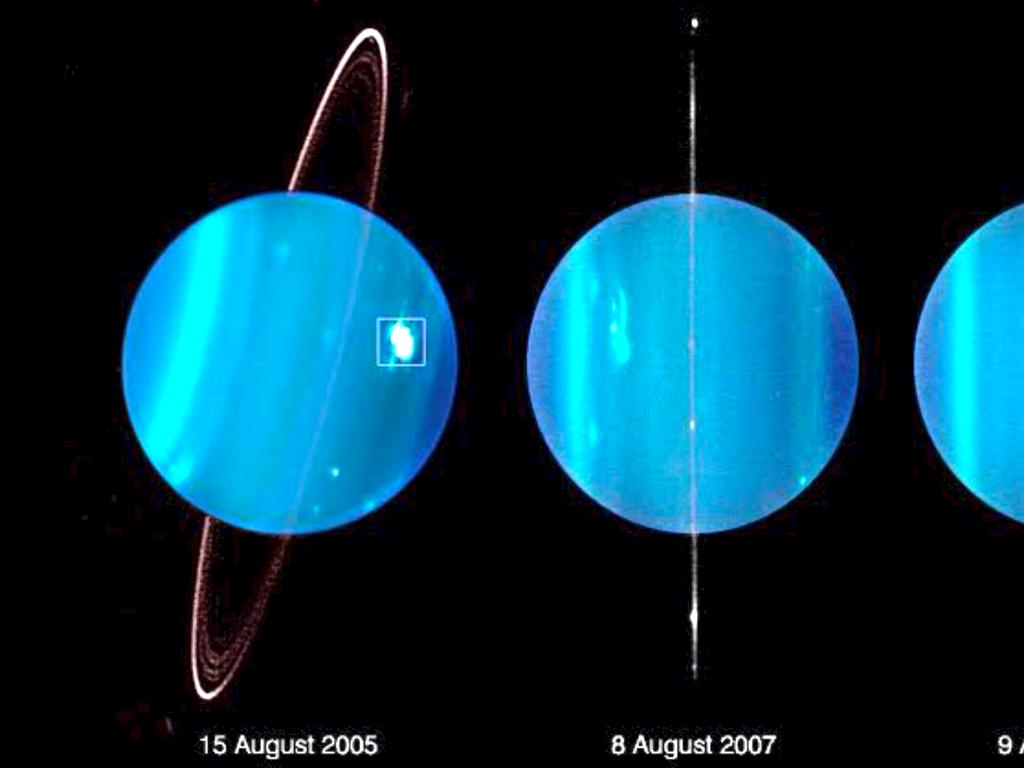 Eje axial de 99 grados esto quiere decir que el planeta casi rota de lado