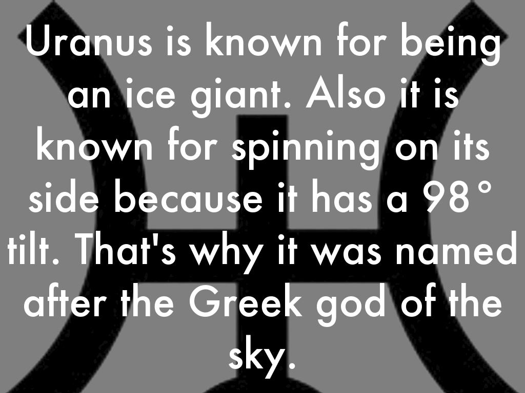 Uranus is known for being an ice giant. Also it is known for spinning on its side because it has a 98° tilt. That's why it was named after the Greek god of the sky.