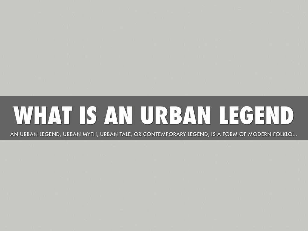 AN URBAN LEGEND, URBAN MYTH, URBAN TALE, OR CONTEMPORARY LEGEND, IS A FORM OF MODERN FOLKLORE CONSISTING OF STORIES THAT MAY OR MAY NOT HAVE BEEN BELIEVED BY THEIR TELLERS TO BE TRUE, AND OFTEN POSSESS HORROR IMPLICATIONS THAT ARE BELIEVABLE TO THEIR AUDIENCE.