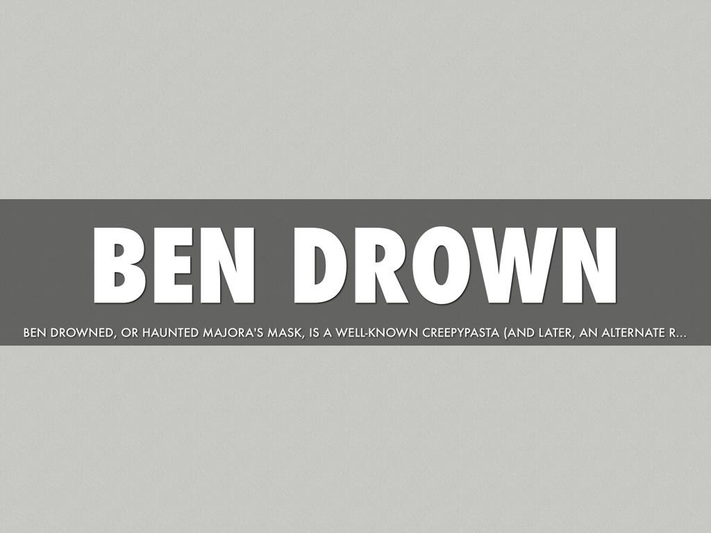 BEN DROWNED, OR HAUNTED MAJORA'S MASK, IS A WELL-KNOWN CREEPYPASTA (AND LATER, AN ALTERNATE REALITY GAME) CREATED BY ALEX HALL, ALSO KNOWN AS "JADUSABLE". THE STORY REVOLVES AROUND A MAJORA'S MASK CARTRIDGE THAT IS HAUNTED BY THE GHOST (IF IT IS A GHOST) OF A BOY NAMED BEN