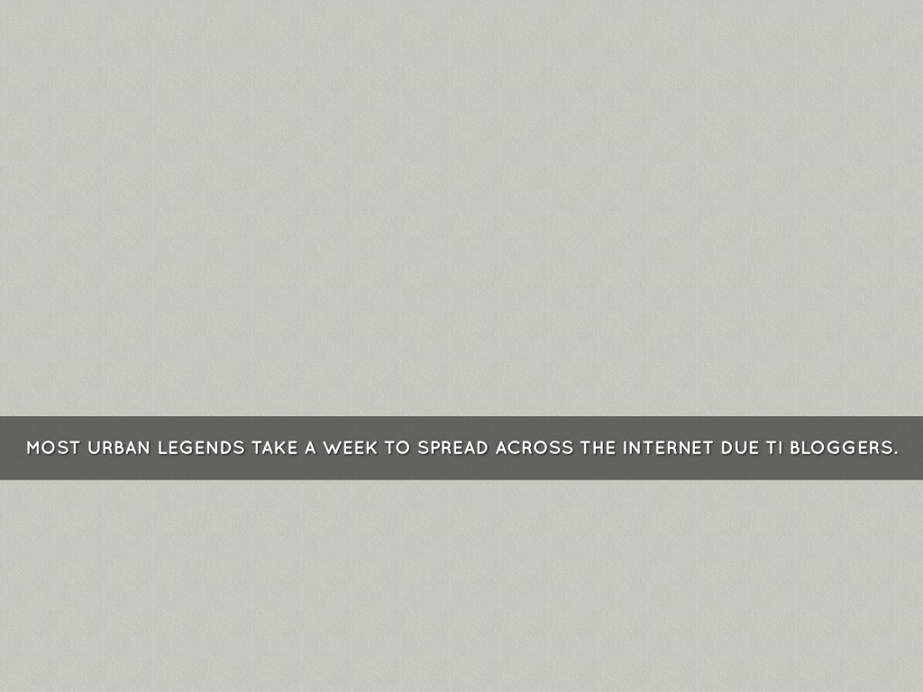 MOST URBAN LEGENDS TAKE A WEEK TO SPREAD ACROSS THE INTERNET DUE TI BLOGGERS.