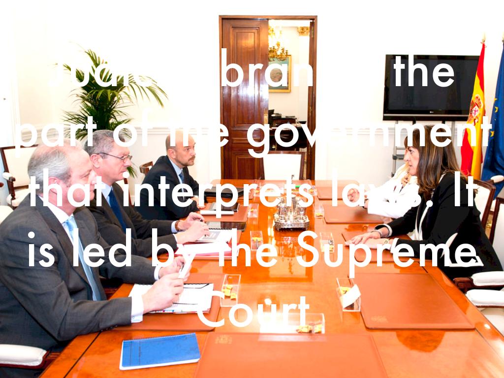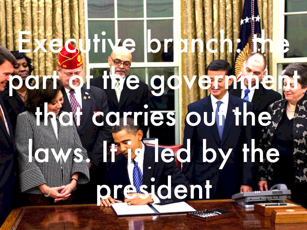 Executive branch: the part of the government that carries out the laws. It is led by the president