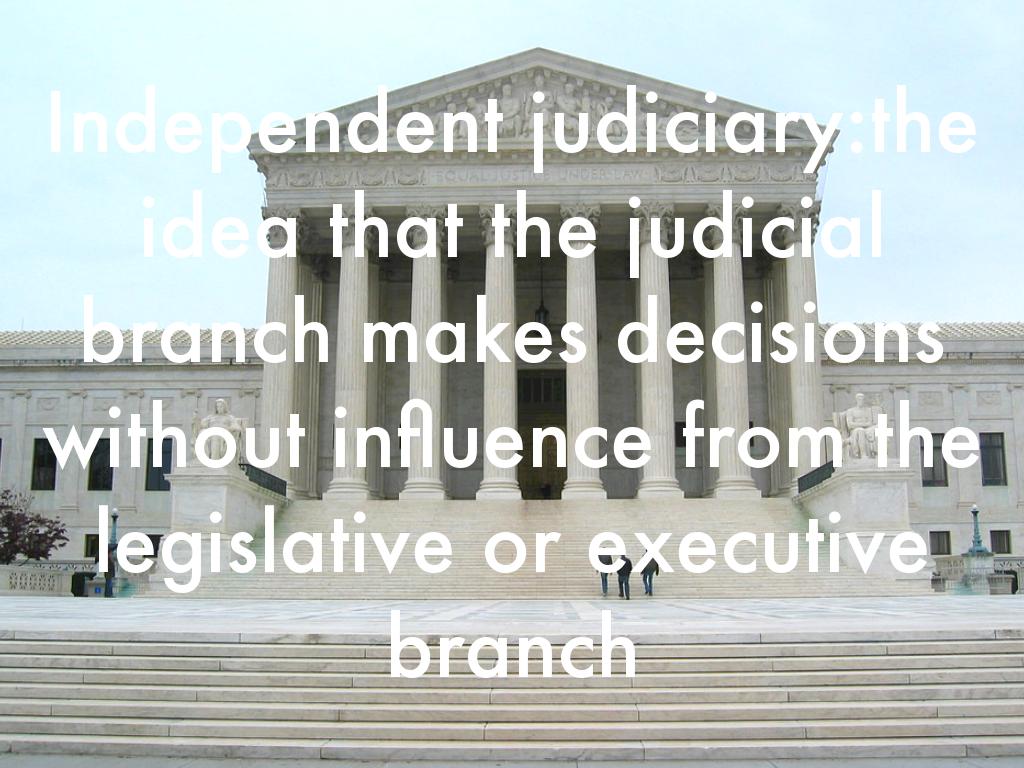 Independent judiciary:the idea that the judicial branch makes decisions without influence from the legislative or executive branch