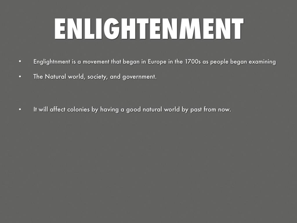 • Englightnment is a movement that began in Europe in the 1700s as people began examining