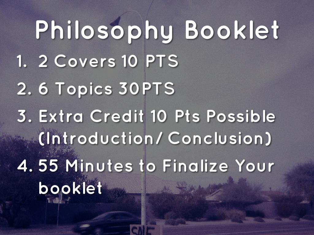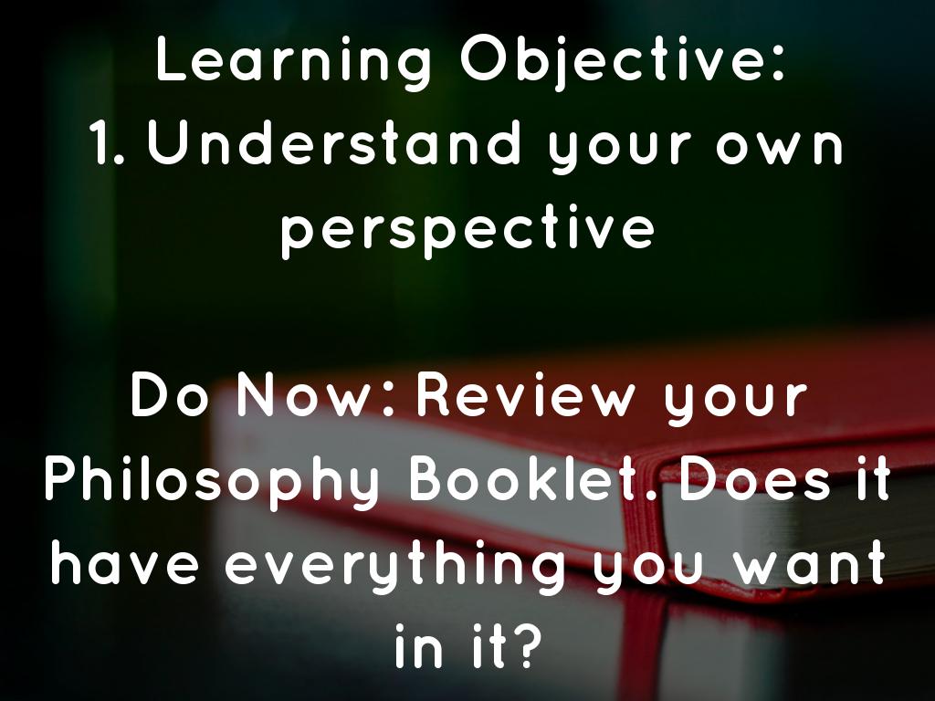 Do Now: Review your Philosophy Booklet. Does it have everything you want in it?