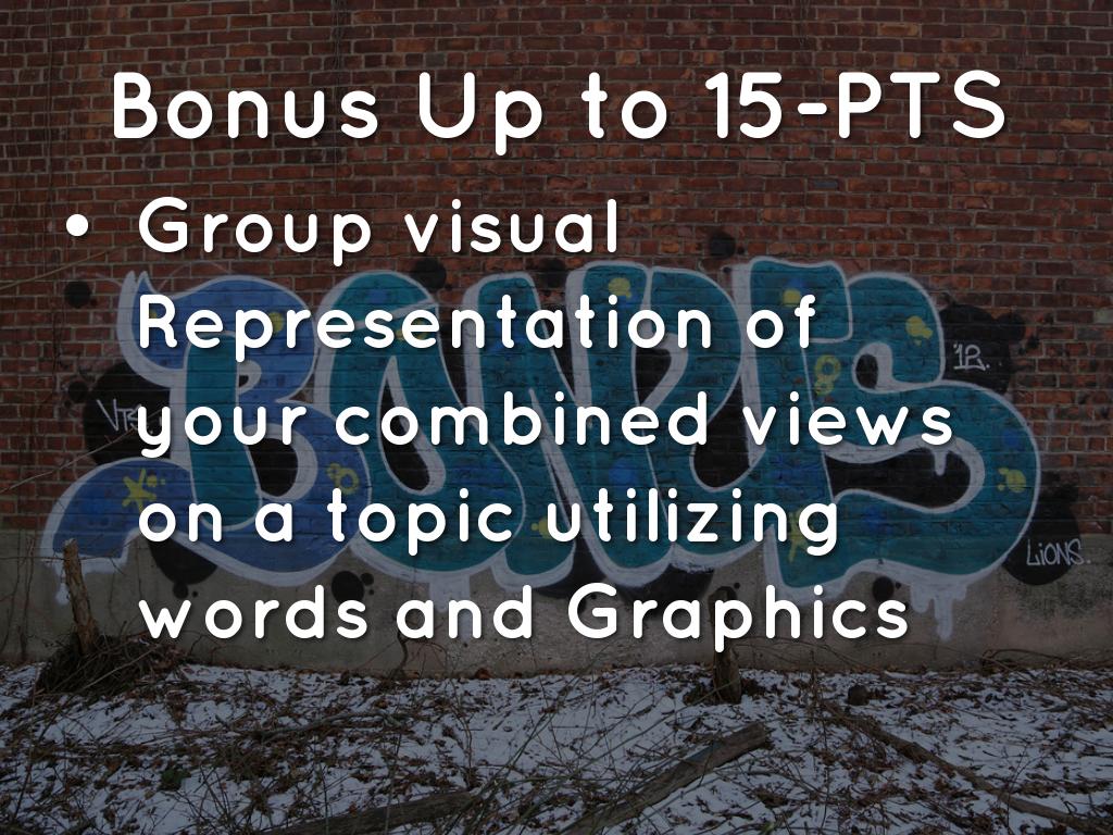 • Group visual Representation of your combined views on a topic utilizing words and Graphics