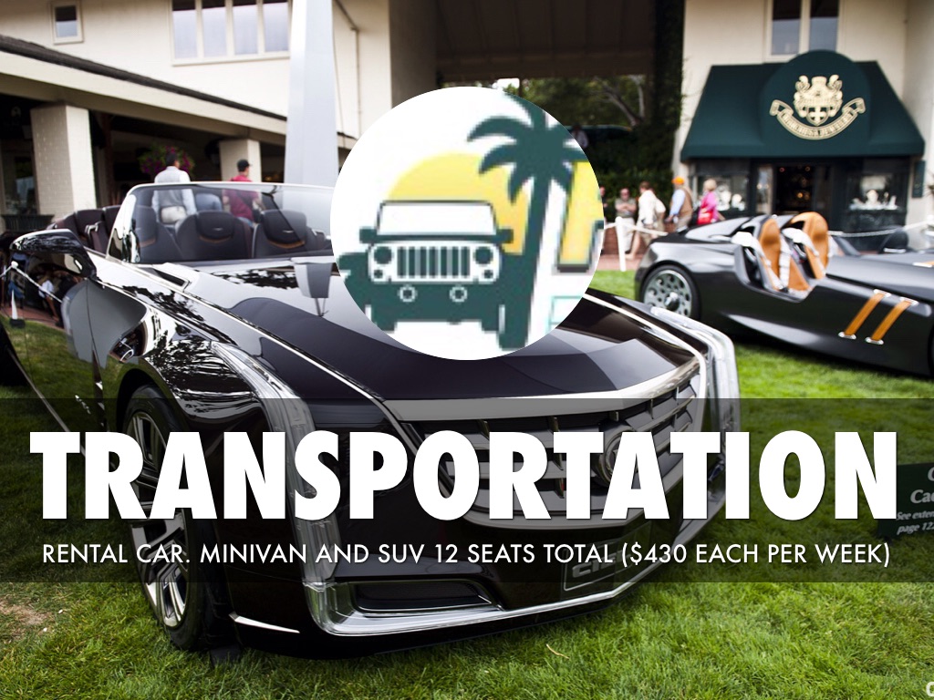 RENTAL CAR. MINIVAN AND SUV 12 SEATS TOTAL ($430 EACH PER WEEK)