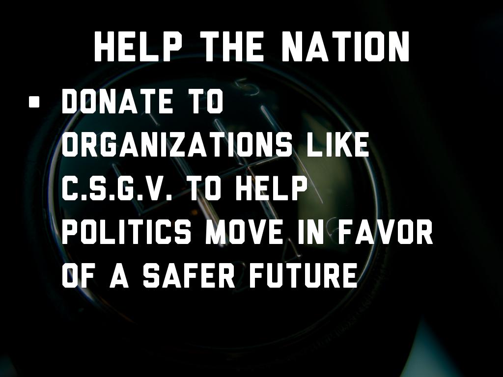 Donate to organizations like C.S.G.V. to help politics move in favor of a safer future