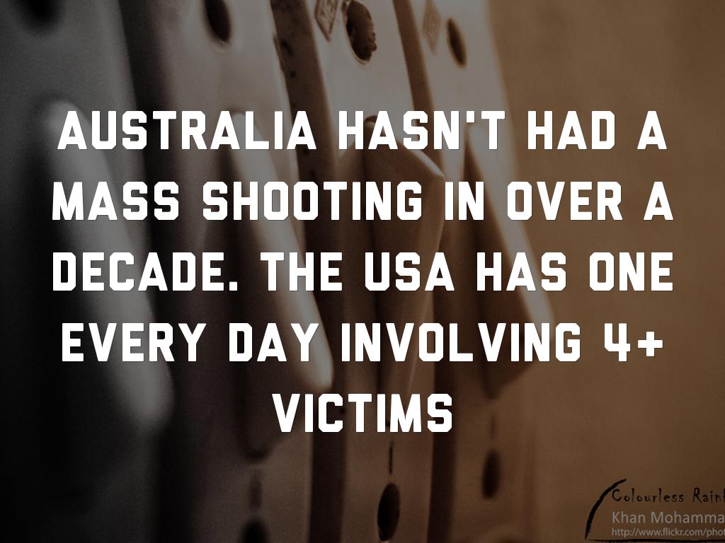 Australia hasn't had a mass shooting in over a decade. The USA has one every day involving 4+ Victims