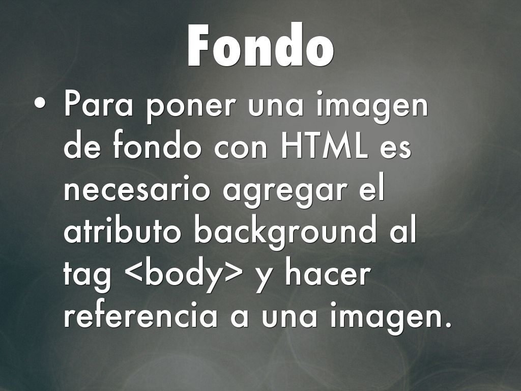 Para poner una imagen de fondo con HTML es necesario agregar el atributo background al tag y hacer referencia a una imagen.