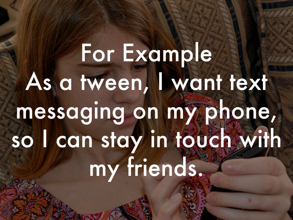 As a tween, I want text messaging on my phone, so I can stay in touch with my friends.