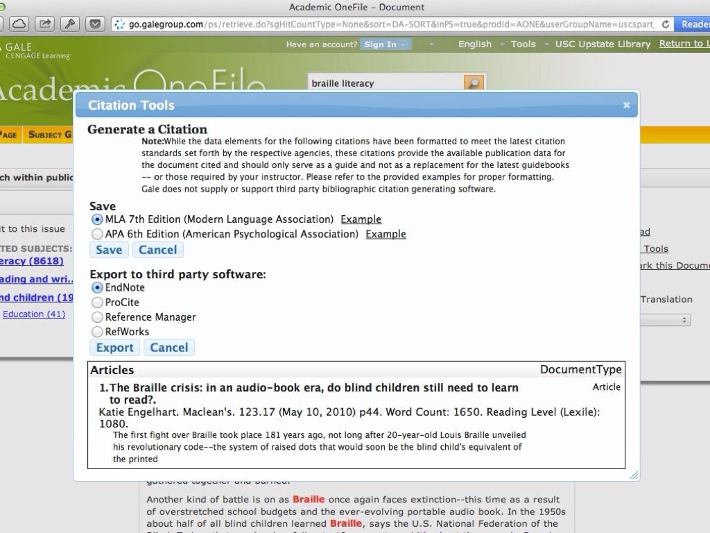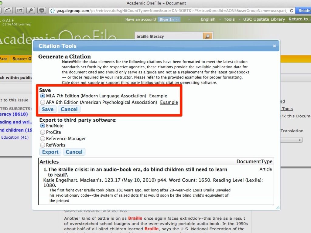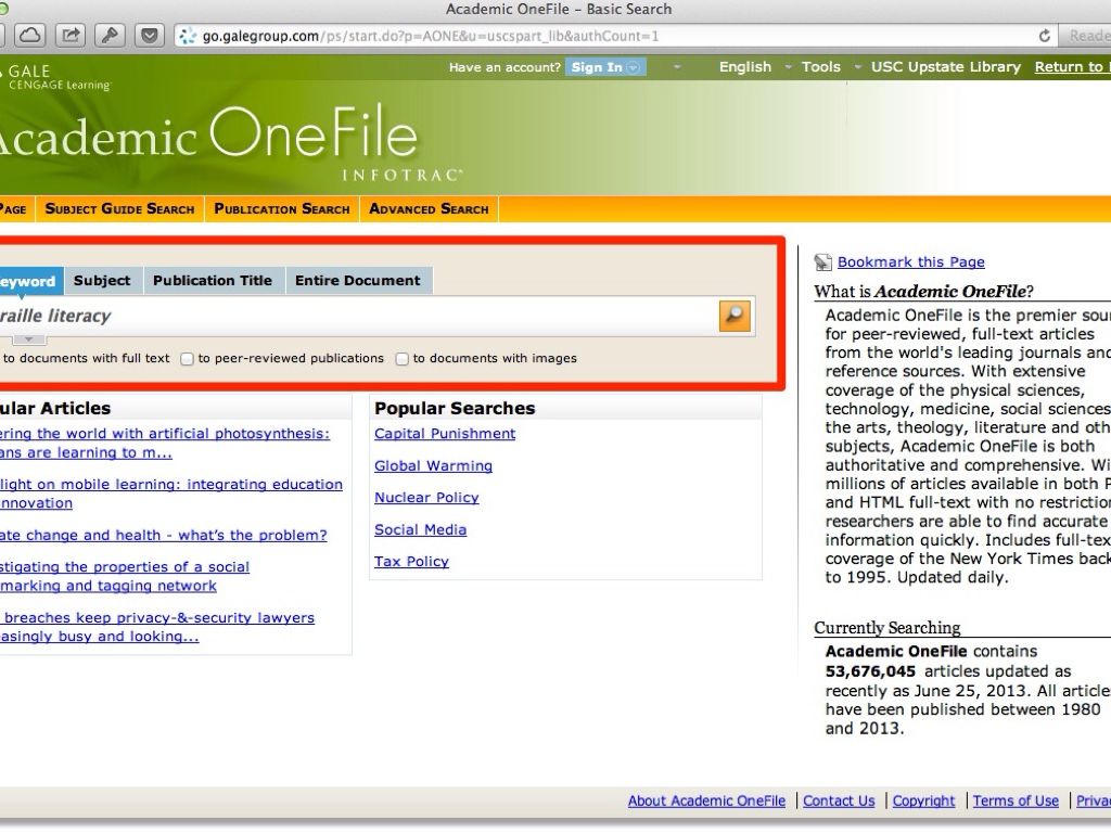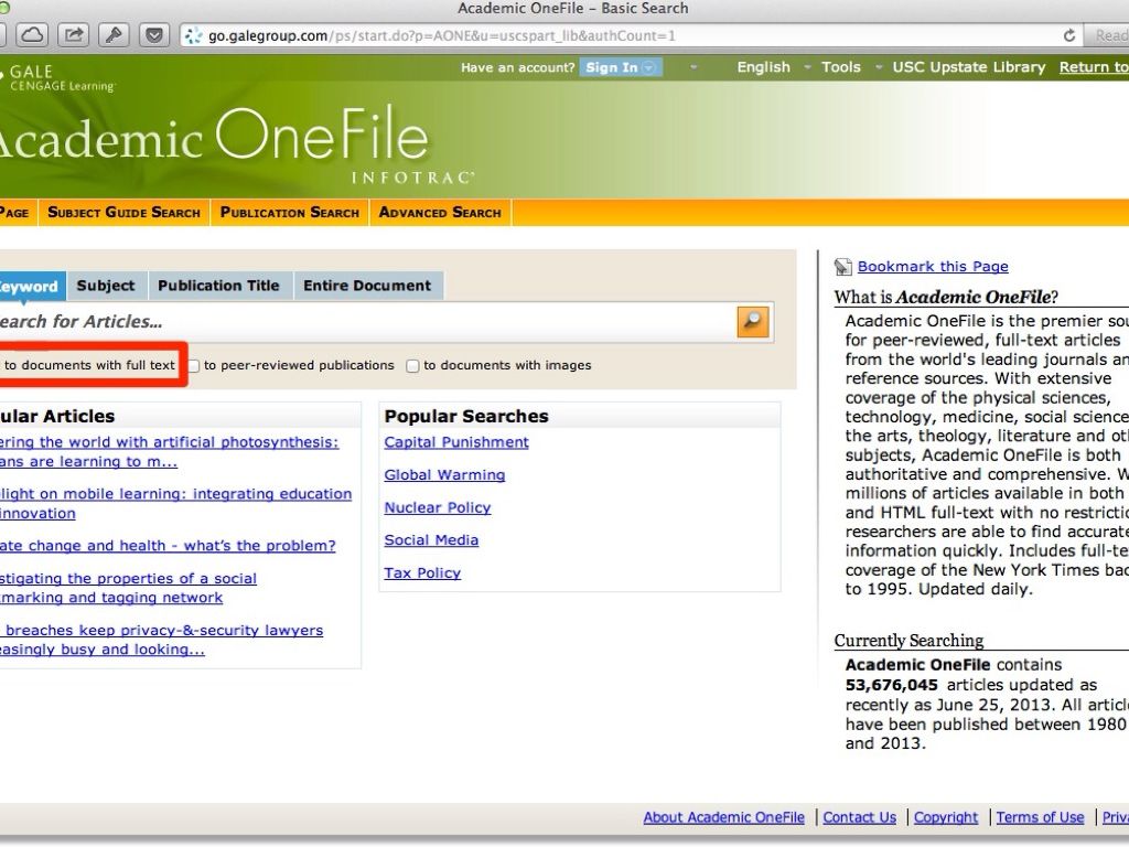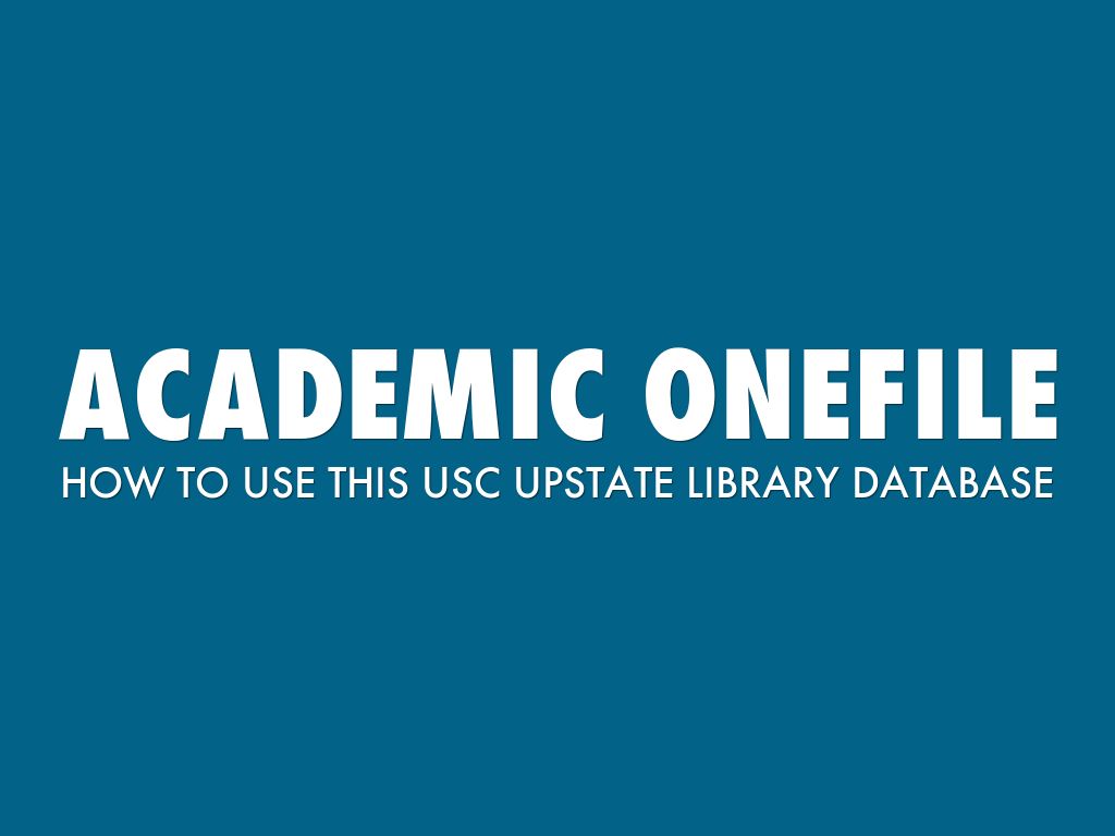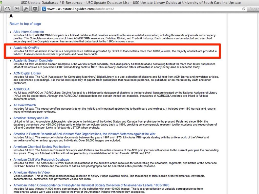 HOW TO USE THIS USC UPSTATE LIBRARY DATABASE