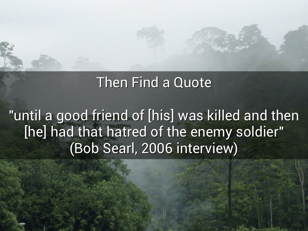 I had no feeling one way or another towards Vietnamese soldiers or the Viet Cong, until a good friend of mine was killed and then I had that hatred of the enemy soldier. That stayed with me for years.