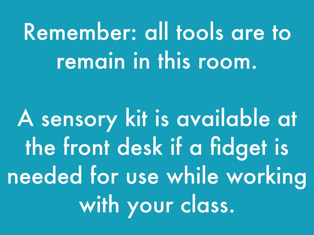 A sensory kit is available at the front desk if a fidget is needed for use while working with your class.