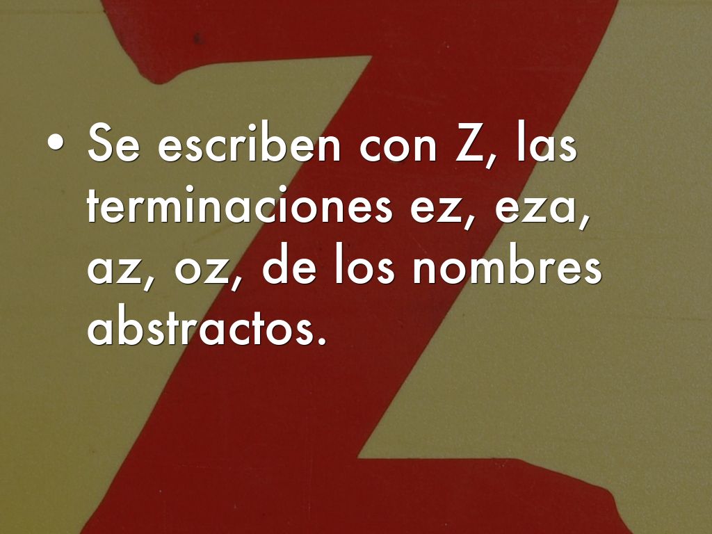 Se escriben con Z, las terminaciones ez, eza, az, oz, de los nombres abstractos.
