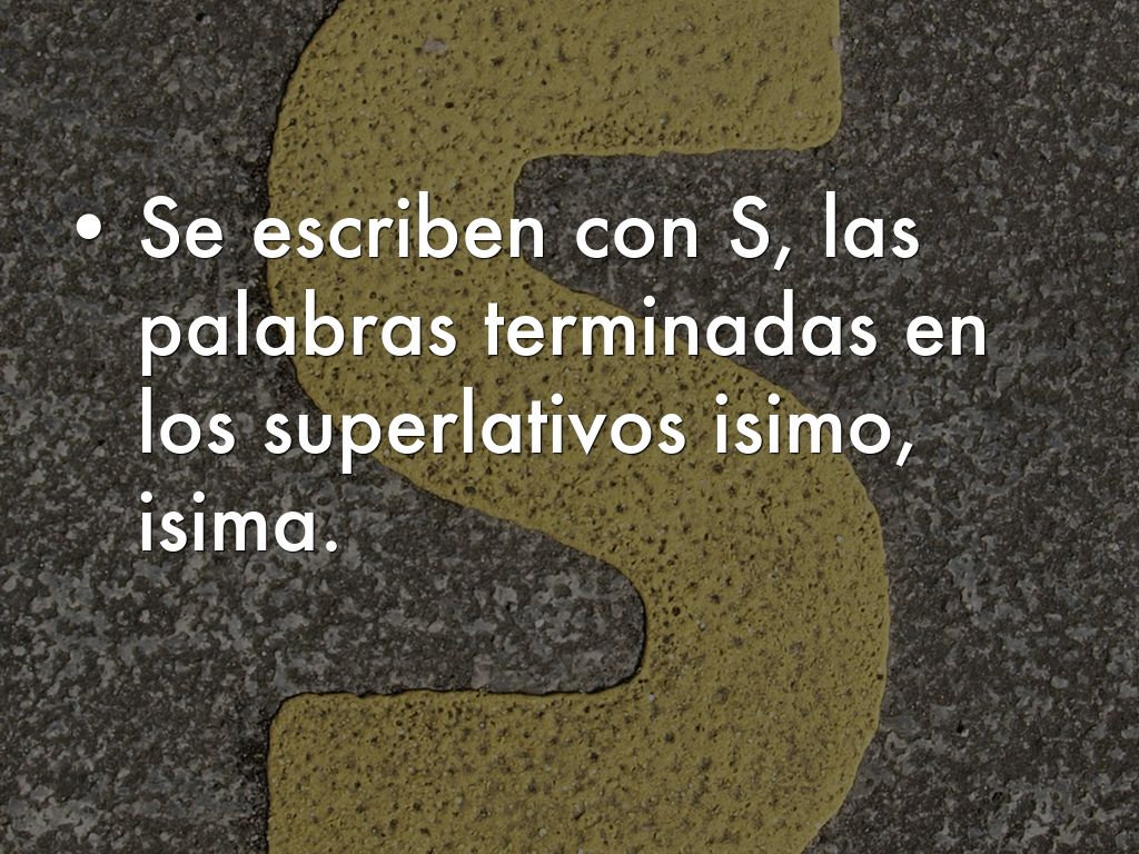 Se escriben con S, las palabras terminadas en los superlativos isimo, isima.