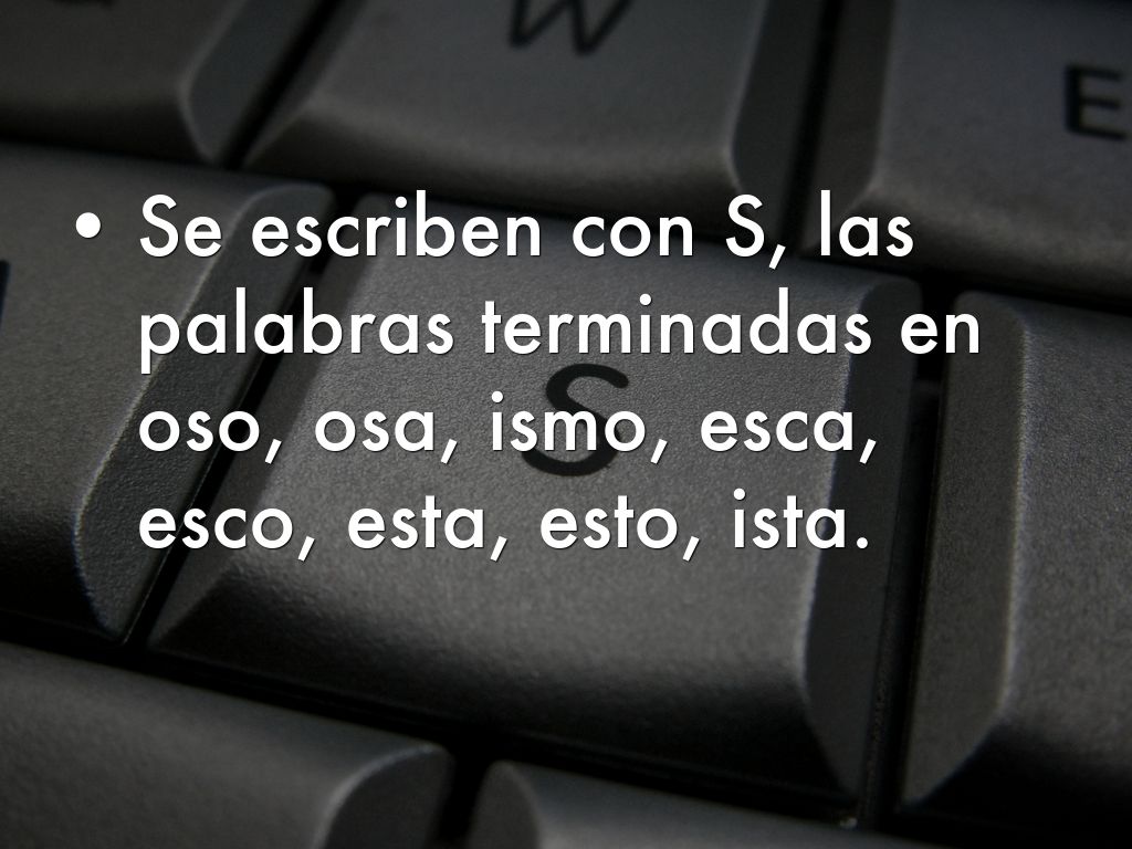 Se escriben con S, las palabras terminadas en oso, osa, ismo, esca, esco, esta, esto, ista.
