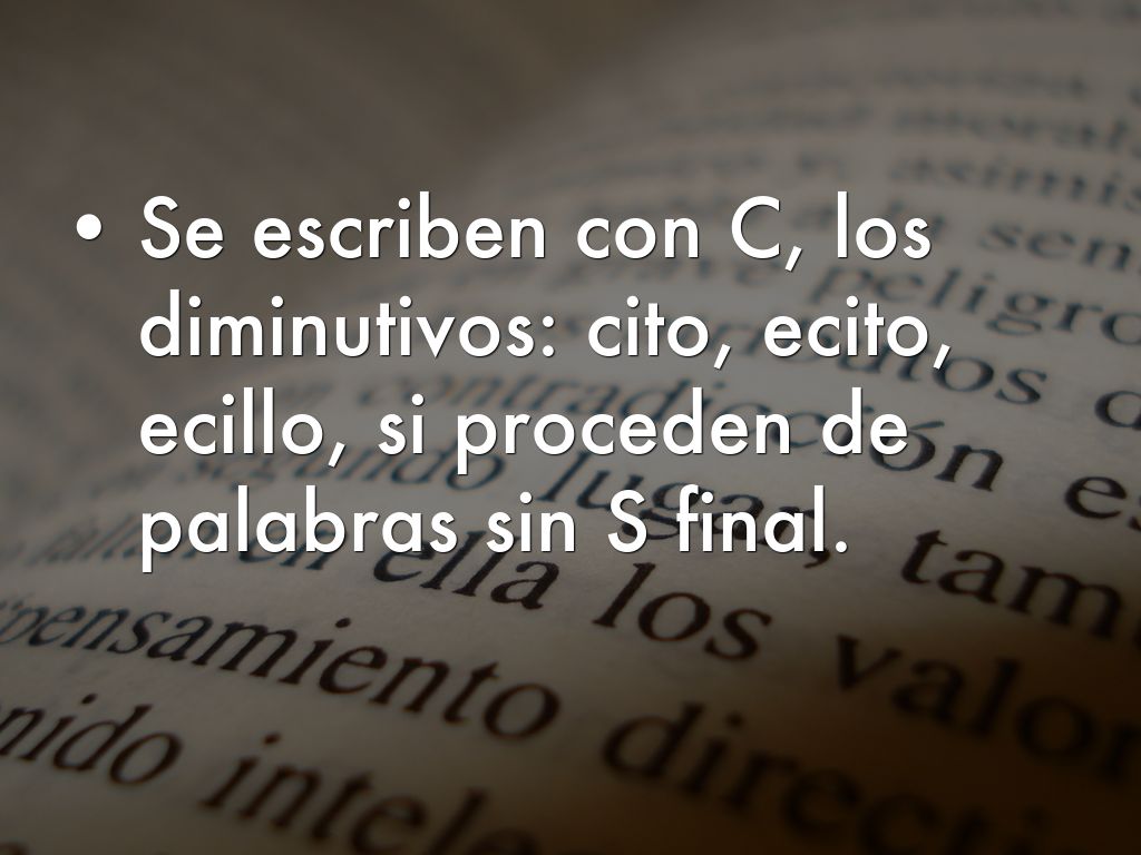 Se escriben con C, los diminutivos: cito, ecito, ecillo, si proceden de palabras sin S final.