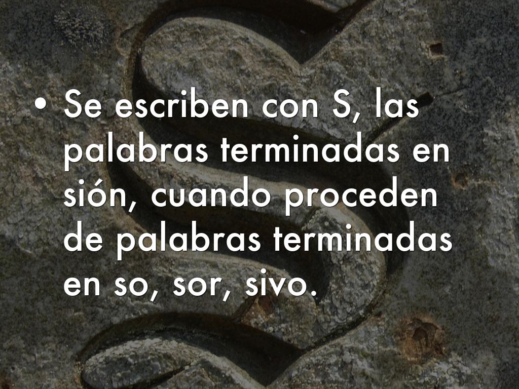 Se escriben con S, las palabras terminadas en sión, cuando proceden de palabras terminadas en so, sor, sivo.