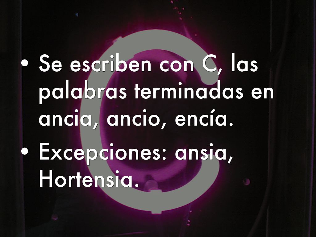 Se escriben con C, las palabras terminadas en ancia, ancio, encía.