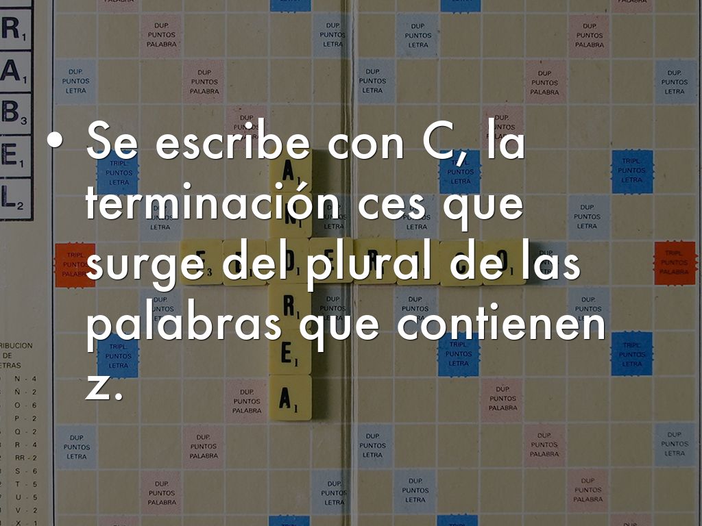 Se escribe con C, la terminación ces que surge del plural de las palabras que contienen z.