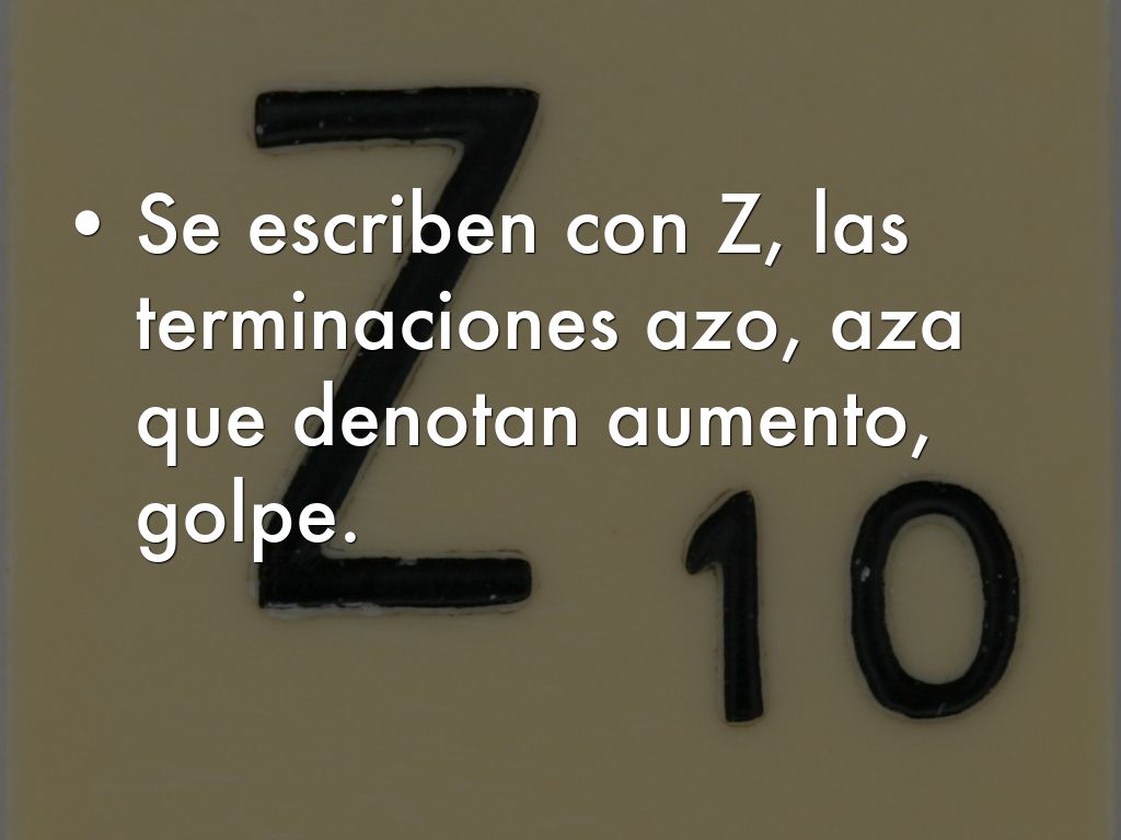 Se escriben con Z, las terminaciones azo, aza que denotan aumento, golpe.