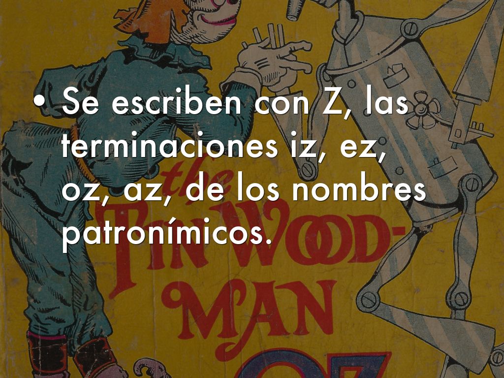 Se escriben con Z, las terminaciones iz, ez, oz, az, de los nombres patronímicos.