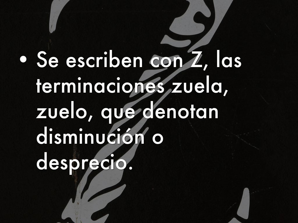 Se escriben con Z, las terminaciones zuela, zuelo, que denotan disminución o desprecio.