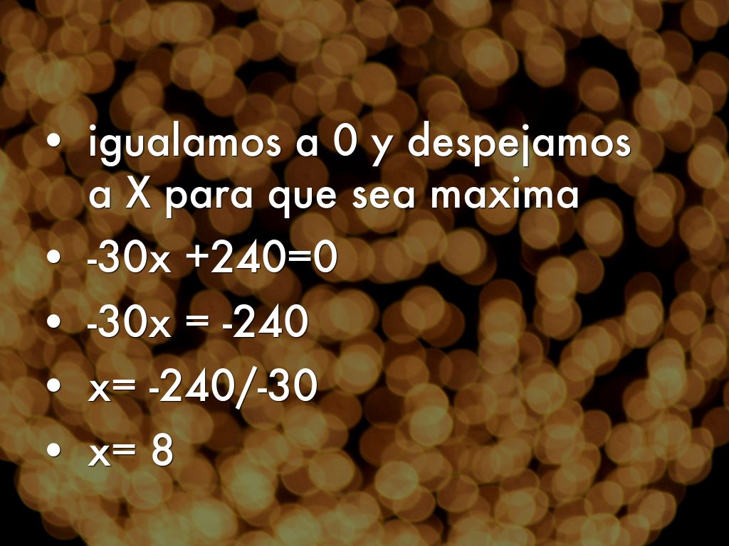 igualamos a 0 y despejamos a X para que sea maxima