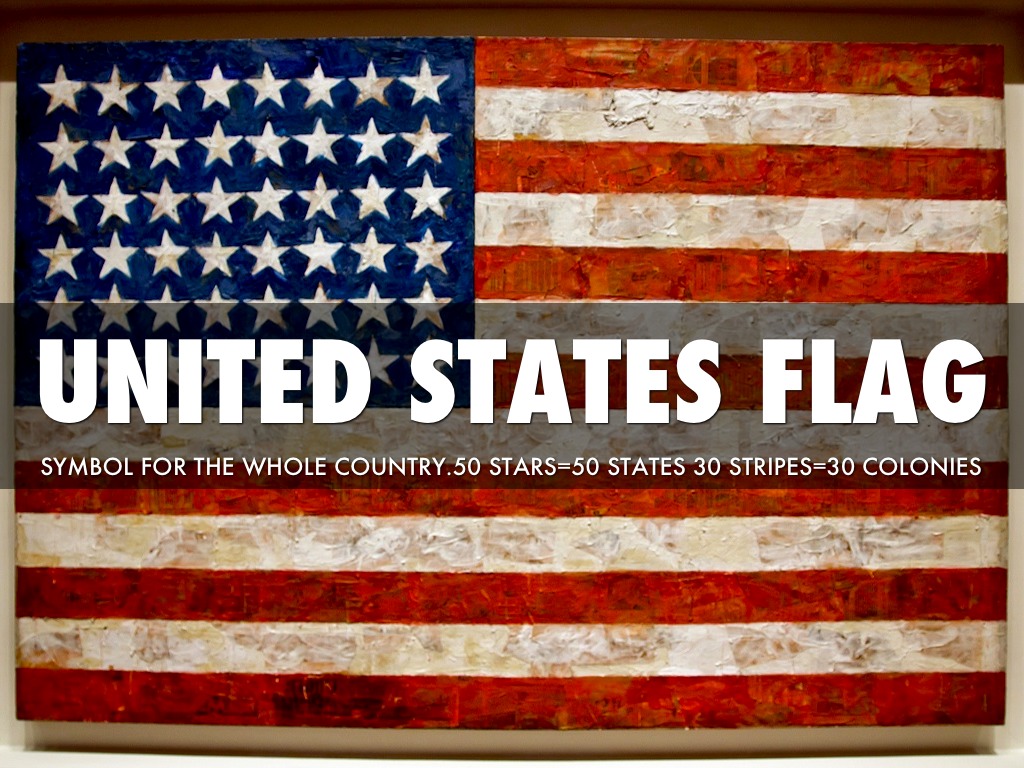 SYMBOL FOR THE WHOLE COUNTRY.50 STARS=50 STATES 30 STRIPES=30 COLONIES