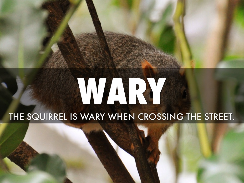 THE SQUIRREL IS WARY WHEN CROSSING THE STREET.