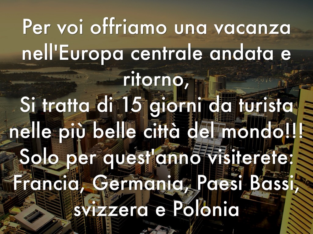Per voi offriamo una vacanza nell'Europa centrale andata e ritorno,
