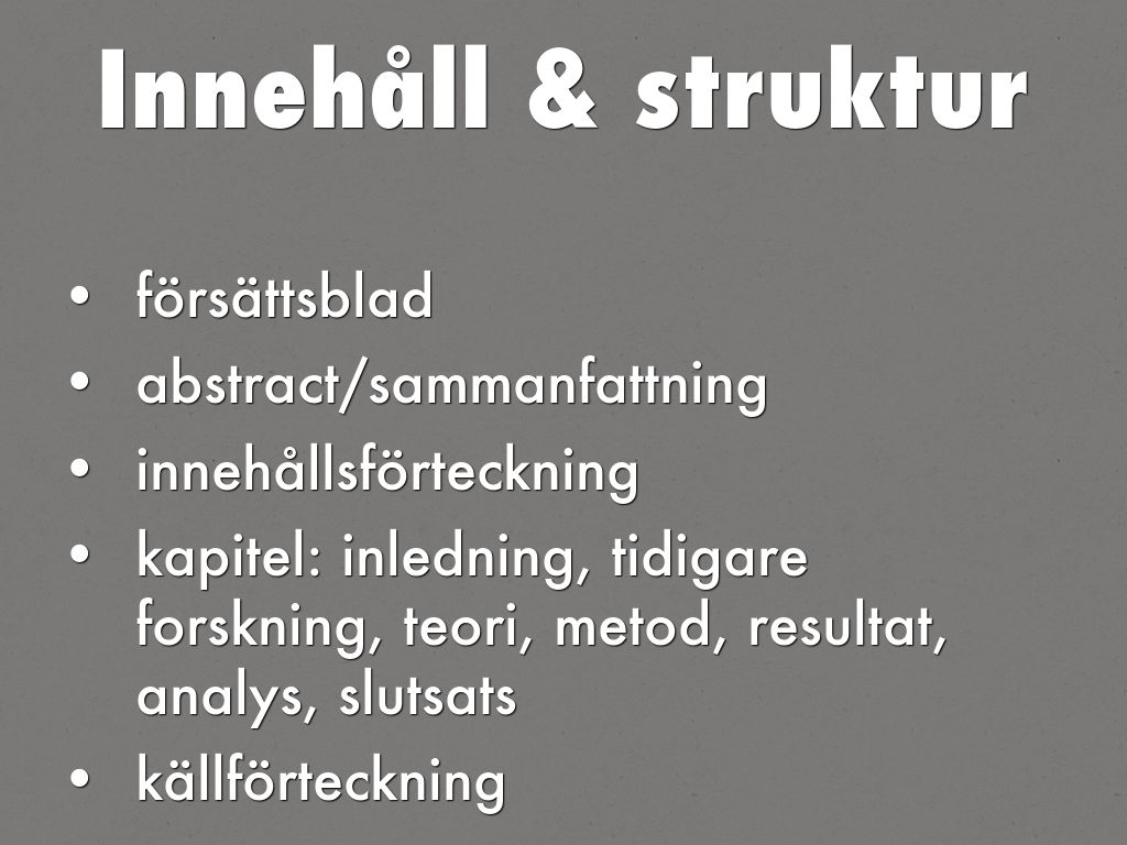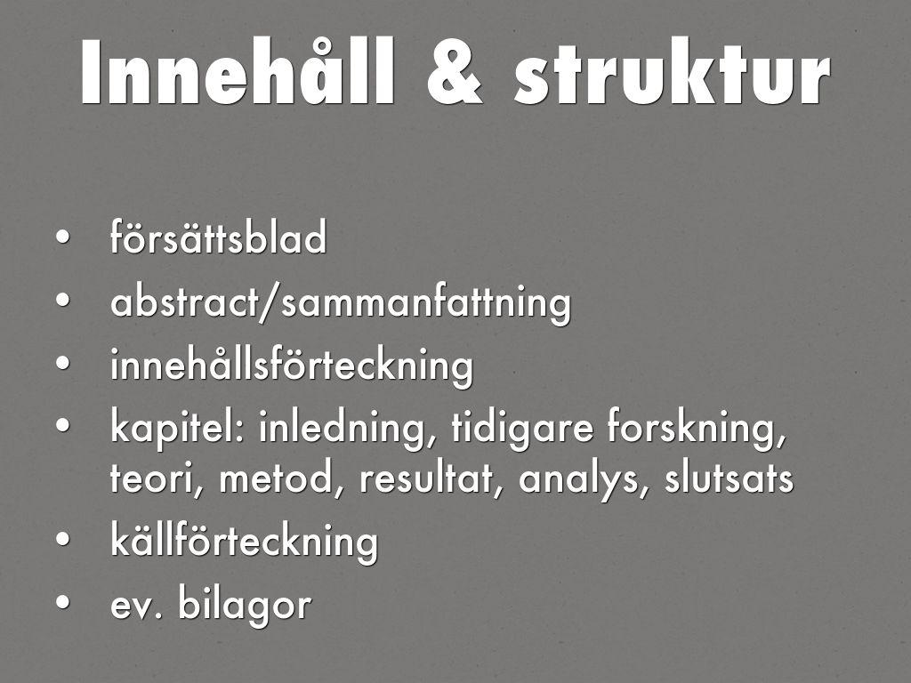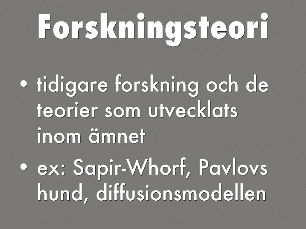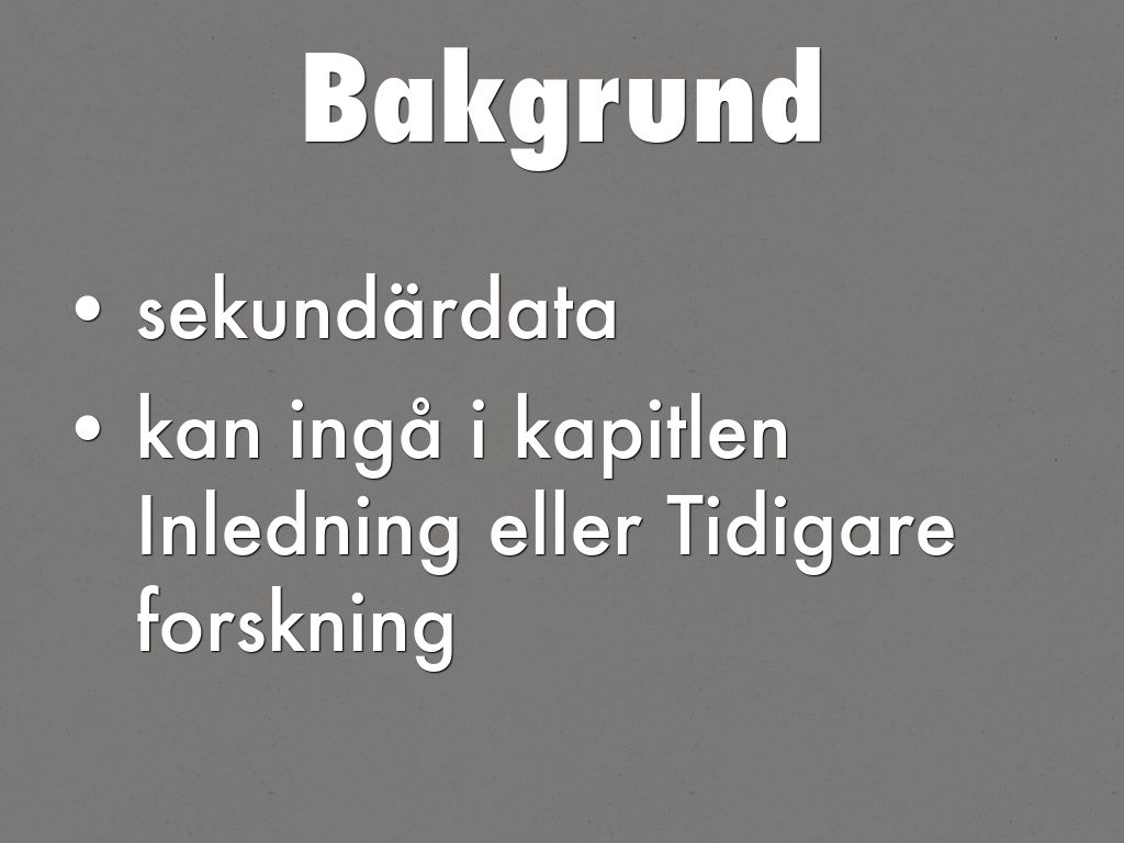 kan ingå i kapitlen Inledning eller Tidigare forskning