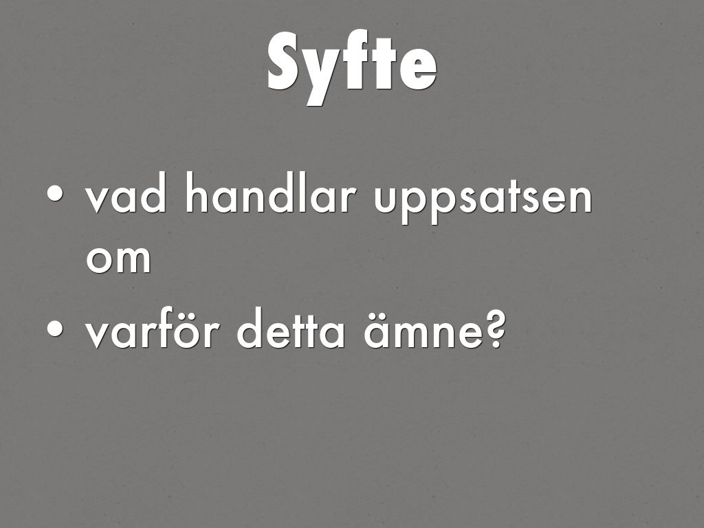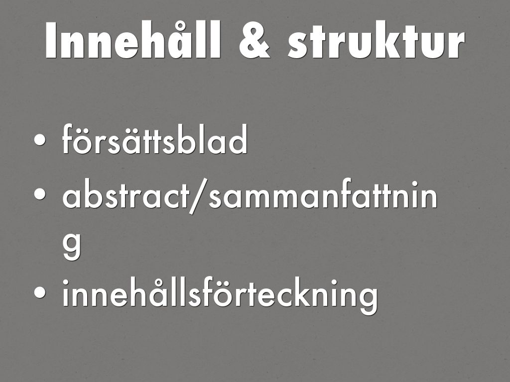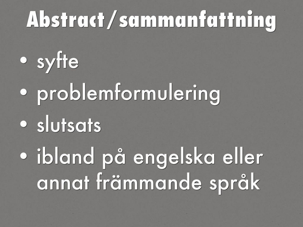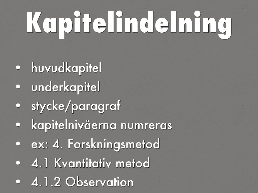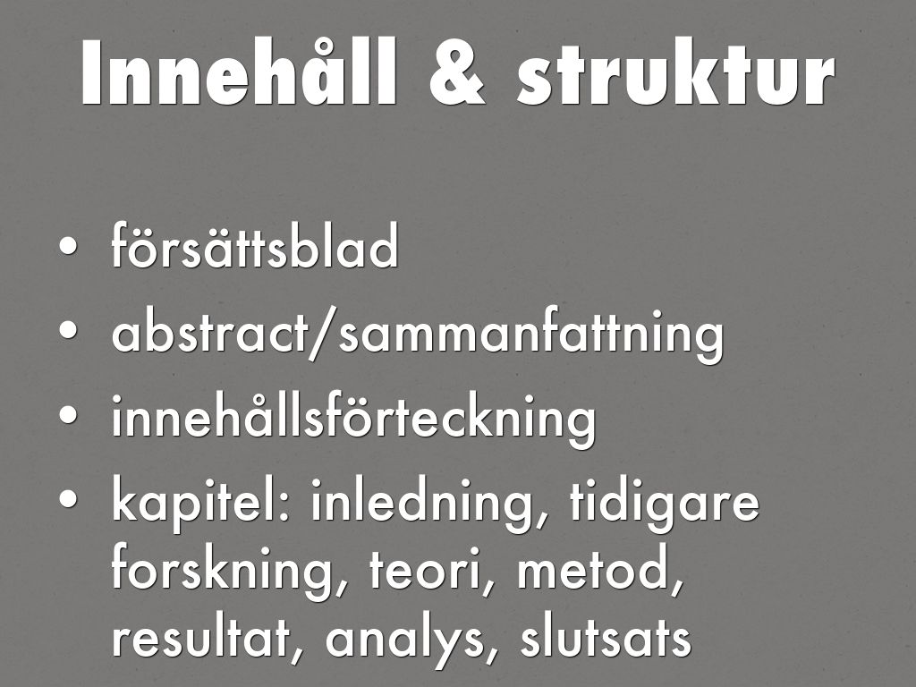 kan ingå i kapitlen Inledning eller Tidigare forskning